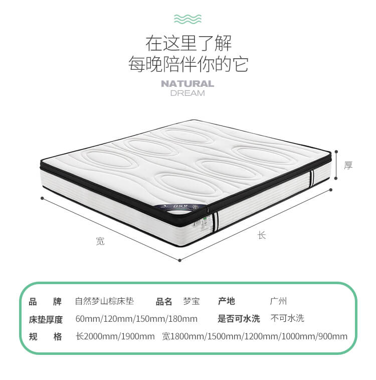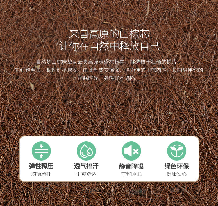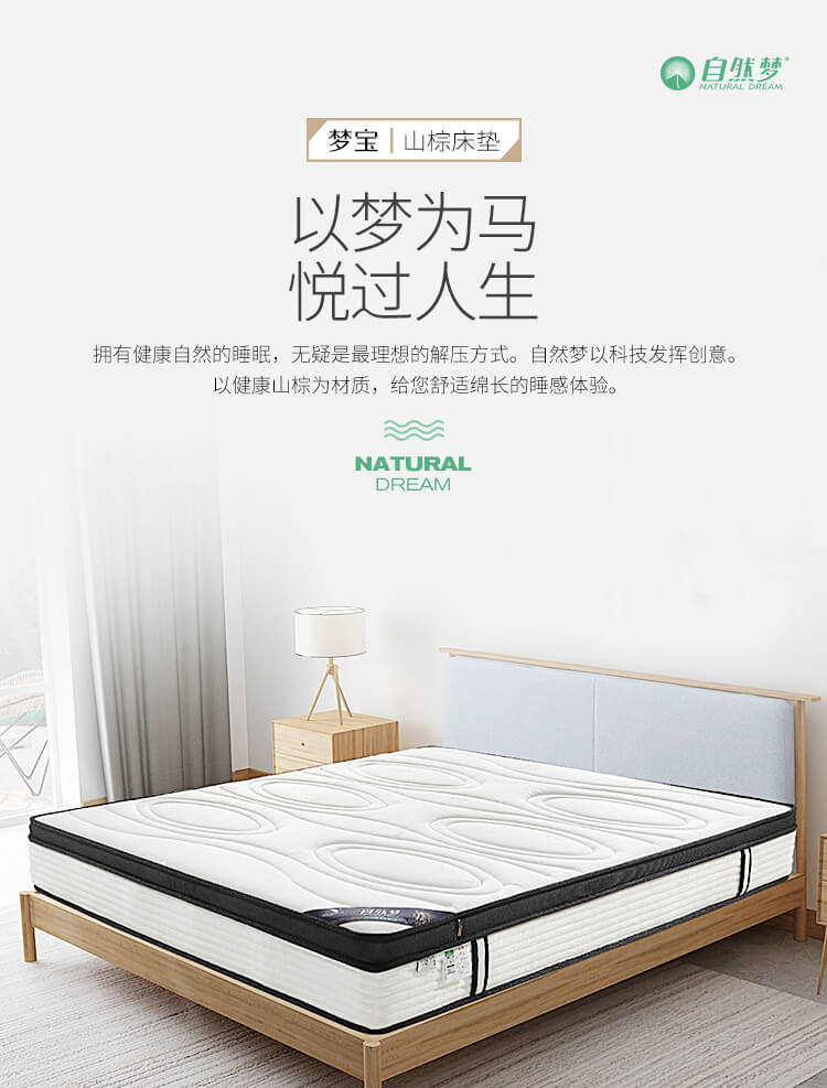 河北棕樂(lè)自然夢(mèng)有限公司是一家生產(chǎn)銷售:山棕床墊、椰棕床墊的植物纖維彈性床墊企業(yè),擁有自動(dòng)化生產(chǎn)工藝、標(biāo)準(zhǔn)化廠房,專業(yè)技術(shù)人員層層把控生產(chǎn)環(huán)節(jié),致力于為消費(fèi)者打造強(qiáng)腰、護(hù)脊、易入睡的高品質(zhì)產(chǎn)品!