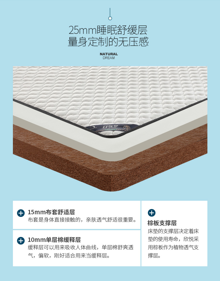 河北棕樂自然夢有限公司是一家生產(chǎn)銷售:山棕床墊、椰棕床墊的植物纖維彈性床墊企業(yè),擁有自動化生產(chǎn)工藝、標(biāo)準(zhǔn)化廠房,專業(yè)技術(shù)人員層層把控生產(chǎn)環(huán)節(jié),致力于為消費者打造強(qiáng)腰、護(hù)脊、易入睡的高品質(zhì)產(chǎn)品!